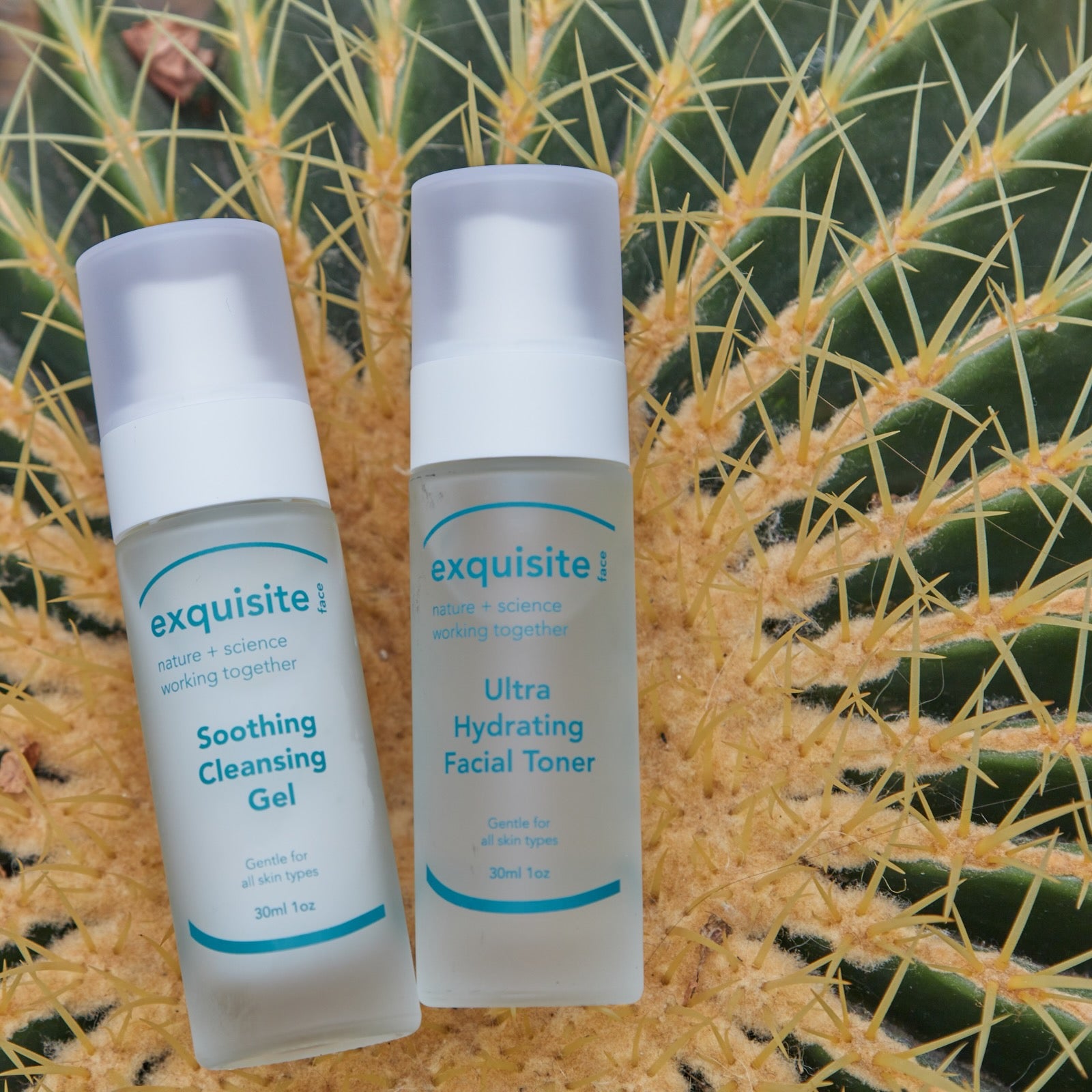 Our Best Selling Soothing Cleansing Gel and Ultra Hydrating Facial Toner is now available in travel sizes! Exquisite Travel Duo — Our Exquisite pairing to elevate your routine and always travel exquisitely!